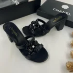 Chanel Black Camellia Peep Toe Heels – Elegant Leather with Signature Flower Embellishment in Dubai UAE