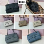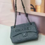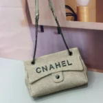 Interestingly, this particular version features the text “CNAHEL” instead of the traditional “CHANEL” branding. This could indicate a stylistic variation, a novelty piece, or potentially a reproduction. Despite this anomaly, the structure and detailing of the bag mirror the quality and design legacy that have made the Classic Flap Bag a symbol of status and fashion sophistication.