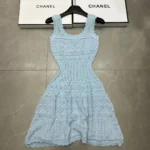 Crafted with attention to detail and high-quality materials, the dress combines contemporary fashion with Chanel’s timeless aesthetic. The interlocking C logo, a hallmark of the brand’s identity, adds a recognizable touch of exclusivity and prestige. Ideal for those who appreciate designer fashion with subtle yet powerful branding, this Chanel dress is a must-have for elevating any wardrobe with a refined, classic statement piece.