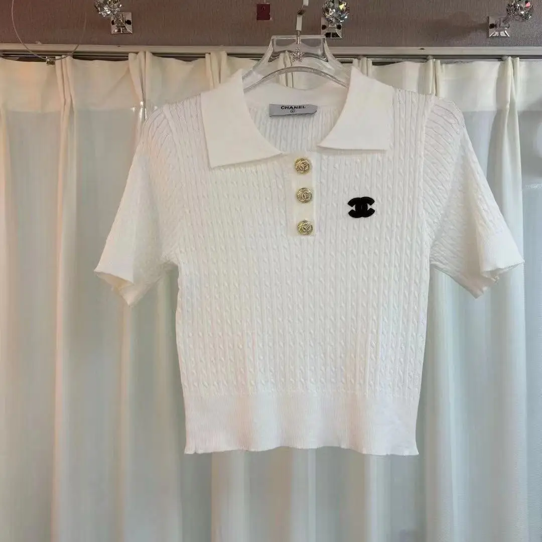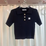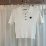 Perfect for both smart-casual outings and elevated loungewear, this piece blends sophistication and comfort effortlessly. Pair it with tailored trousers or a chic skirt for a polished look that embodies Chanel’s signature aesthetic. Whether you’re heading to brunch or attending a casual event, this knit polo shirt brings a touch of Parisian luxury to any ensemble.