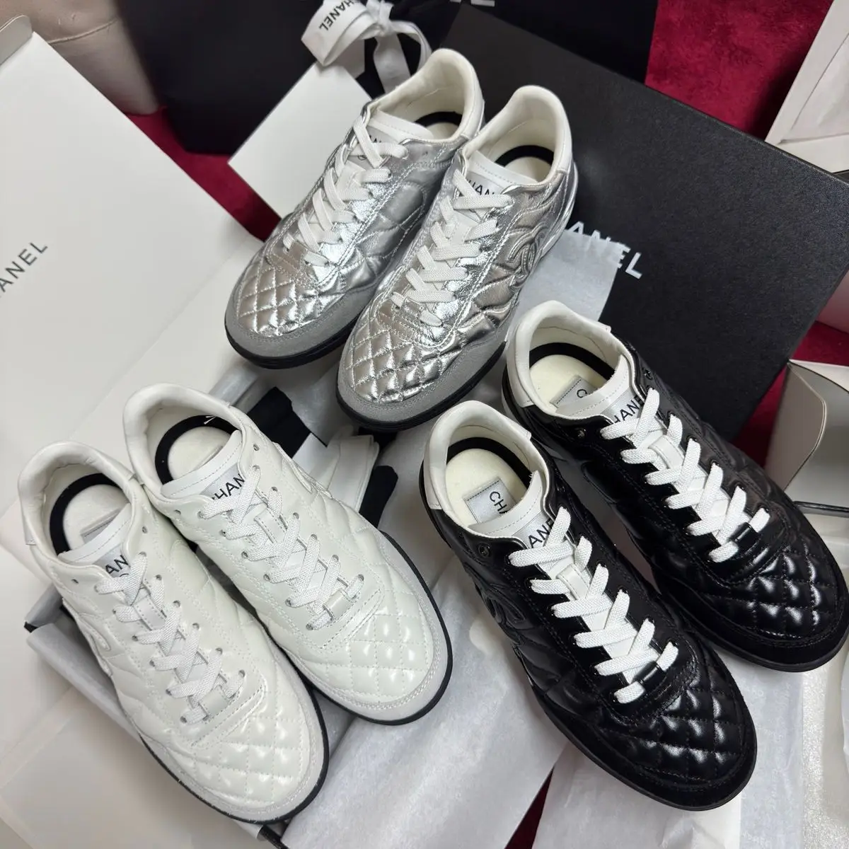 Chanel Quilted Sneakers – Silver, White & Black Luxury Styles with Iconic Logo in Dubai UAE