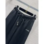 Discover the elegance and comfort of Chanel trousers, a must-have addition to any luxury wardrobe. These wide-leg trousers feature a relaxed yet sophisticated silhouette, perfect for both casual and formal occasions. Crafted with attention to detail, they boast an elastic waistband for a comfortable fit that adapts to your shape. The standout element is the iconic CHANEL logo embroidered on the left leg, showcasing the brand’s signature style and prestige. Made from high-quality materials, these trousers combine fashion and function effortlessly, making them ideal for day-to-night wear. Whether paired with a chic blouse or a casual top, these Chanel trousers elevate any outfit with timeless appeal.