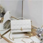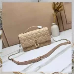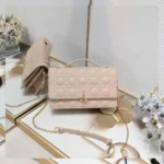 The Dior My Dior Mini Bag, also referred to as the Miss Dior Top Handle Bag, is a refined and compact piece that embodies the essence of Dior’s timeless elegance. Crafted from luxurious Cannage-quilted lambskin—a signature pattern inspired by the cane chairs used at Christian Dior’s early couture shows—this mini bag exudes heritage and sophistication. It features a structured top handle, a detachable gold-tone chain strap for versatile wear, and the iconic “D.I.O.R” charm, making it a stylish statement for day or evening.