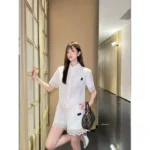 Elegant White Two-Piece Lace Trim Summer Set – Top & Shorts Ensemble in Dubai UAE