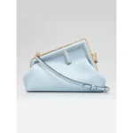 Inside, a soft fabric lining and secure magnetic closure keep your essentials safe in style. The bag features a detachable shoulder strap, allowing you to wear it crossbody, on the shoulder, or carry it as a clutch for a sleek, day-to-night transition. With its fresh color and iconic detailing, the Fendi First Medium is a must-have for those who love timeless fashion with a twist.