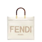 The Fendi Sunshine Medium Shopper blends timeless sophistication with everyday practicality, crafted from premium smooth leather and detailed with the iconic heat-stamped FENDI ROMA logo. Its clean, structured silhouette is elevated by distinctive tortoiseshell-effect plexiglass handles, making it a standout piece that embodies modern Italian luxury. Designed and made in Italy, this shopper is both elegant and durable—ideal for the fashion-forward professional or on-the-go trendsetter.