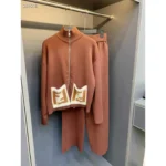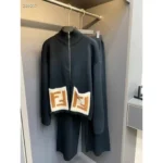The two-piece set includes a zip-up top and coordinated bottoms, both designed with meticulous attention to detail, combining functionality with luxury. The knitted texture adds a tactile richness, while the iconic FF logo injects a bold designer statement into your everyday wardrobe.