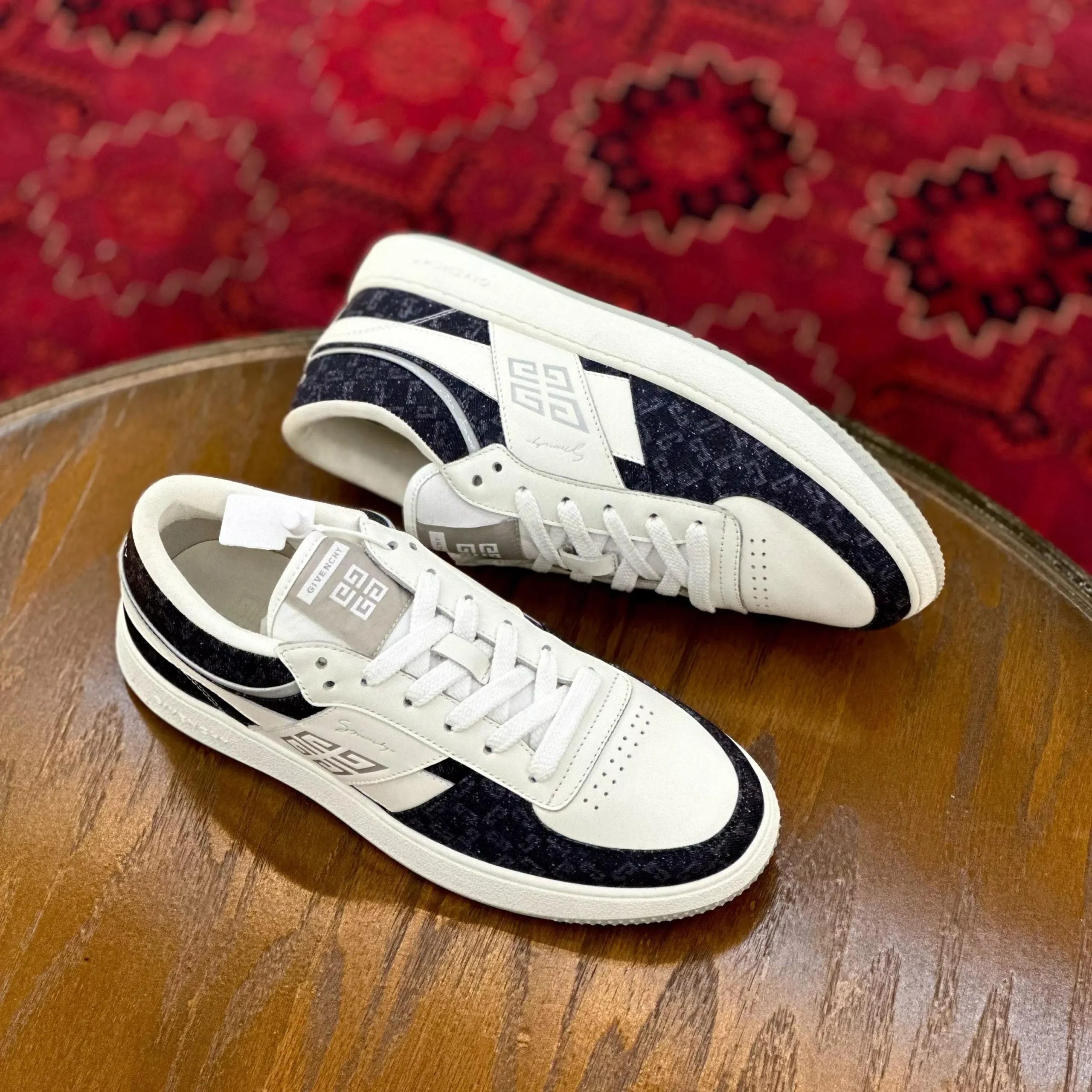 Modern edge meets luxury design in the Givenchy G Move Sneakers, crafted for those who appreciate sleek style with bold branding. These sneakers feature a crisp white leather base accented by dynamic black and white patterned overlays, including the unmistakable Givenchy logo for a graphic, fashion-forward finish.