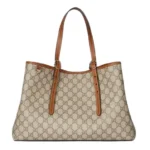 the Gucci GG Emblem Large Tote Bag is a testament to exceptional craftsmanship and attention to detail. The double leather top handles provide comfortable carrying, while the suede-like microfiber lining enhances its luxurious feel. Inside, the spacious interior offers ample room for all your necessities, including a laptop or other essentials. Whether paired with office attire, weekend wear, or sophisticated evening looks, this tote embodies timeless elegance and modern functionality, making it a must-have for fashion-forward women.