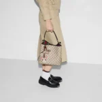 the Gucci GG Emblem Medium Bucket Bag is designed with meticulous attention to detail. The adjustable leather shoulder strap provides versatile carrying options, allowing it to be worn as a shoulder or crossbody bag for maximum convenience. Inside, the suede-like microfiber lining enhances its luxurious feel, while the spacious interior offers ample room for daily essentials. Whether styled with casual ensembles or more refined looks, this bag exudes sophistication, versatility, and contemporary elegance, making it a must-have for modern women.