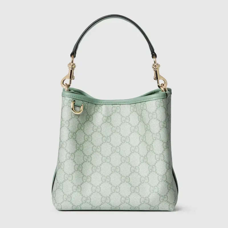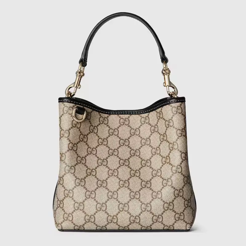 the Gucci GG Emblem Small Bucket Bag is designed for both style and functionality. The adjustable leather shoulder strap allows for versatile carrying options, whether worn as a shoulder or crossbody bag. Inside, the suede-like microfiber lining enhances its luxurious feel, while the well-organized interior provides space for daily essentials. Whether paired with daytime ensembles or evening looks, this bag exudes sophistication, versatility, and contemporary charm, making it an essential addition to any fashion-forward wardrobe.