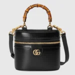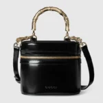 The Gucci Mini Vanity Bag with Bamboo Handle (Model: 828144 10R0G 6207) is a refined and elegant accessory that merges vintage inspiration with modern sophistication. Crafted from luxurious leather, this mini bag features Gucci’s signature bamboo top handle, a timeless symbol of the brand’s heritage. The structured vanity case silhouette adds a unique charm, making it a standout piece for both day and evening wear. A gold-tone zipper closure ensures secure storage while maintaining a sleek and polished aesthetic.