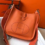 The Hermès Evelyne bag is a timeless blend of form and function, originally introduced in the 1970s as an equestrian utility bag. Its defining feature—the perforated “H” logo—was initially intended to ventilate grooming tools, but has since become a hallmark of the design. With a simple, fuss-free silhouette and a casual, adjustable canvas strap, the Evelyne has evolved into one of Hermès’ most sought-after everyday bags.