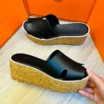 Hermès Eze 30 Platform Sandals – Cork Wedge with Iconic “H” Leather Strap in Dubai UAE