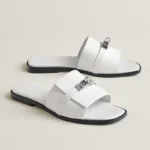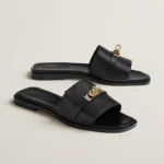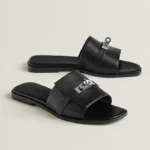 Elevate your wardrobe with the Hermès Giulia Sandal, a sophisticated blend of modern minimalism and timeless elegance—now available in Dubai, UAE. Crafted from smooth calfskin leather, this sleek sandal features delicate straps that frame the foot beautifully, paired with a low stacked heel for subtle lift. The refined silhouette and signature Hermès quality make it a versatile staple for both daytime luxury and evening chic.