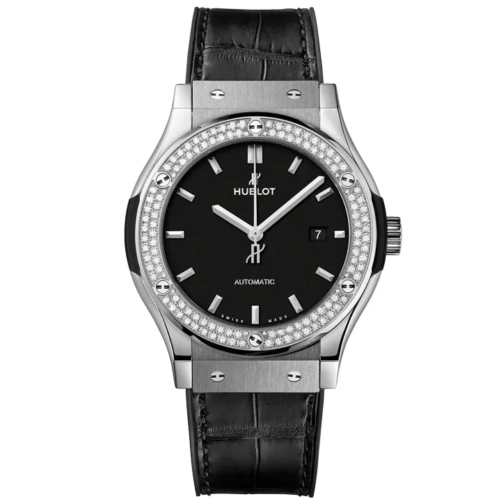 Equipped with a black alligator leather strap, the Hublot Platinum Diamonds 42mm combines sophistication with comfort. The strap’s luxurious texture and durable construction make it ideal for both formal and casual occasions. This timepiece also features a date function at the 3 o’clock position and luminescent hands, ensuring visibility in any lighting. With its bold, glamorous design, the Hublot Platinum Diamonds 42mm makes a statement of exclusivity and refined taste, appealing to those who appreciate high-end watchmaking and luxury craftsmanship. This watch is truly a masterpiece that blends exceptional performance with aesthetic beauty.
