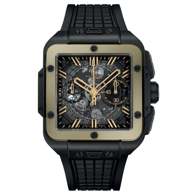 With a 100-meter water resistance, the Square Bang Unico is as functional as it is stylish. The ceramic bezel enhances its scratch-resistant properties, while the column-wheel chronograph mechanism ensures precision timekeeping. The open-worked dial design, featuring luminescent hour markers and hands, enhances readability while maintaining the watch’s avant-garde aesthetic. Whether paired with casual attire or formal wear, the Hublot Square Bang Unico Magic Silver & Ceramic stands as a testament to the brand’s commitment to innovation and bold design.