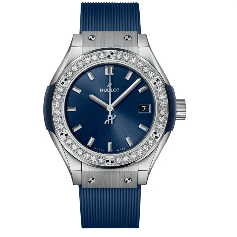 The Hublot Titanium Blue Platinum Diamonds is paired with a comfortable black rubber strap, which complements the watch’s sporty yet refined design. The strap ensures a secure fit, making it ideal for daily wear, while the automatic movement inside guarantees precision and reliability. With water resistance of up to 50 meters, this timepiece is functional as well as fashionable, making it versatile for both casual and formal occasions. The Hublot Titanium Blue Platinum Diamonds 29mm is a perfect blend of elegance and performance, offering a watch that not only stands out for its aesthetic appeal but also delivers in terms of craftsmanship and functionality.