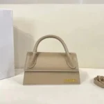 Add a touch of iconic French style to your wardrobe with the Jacquemus Le Chiquito Mini Bag in Beige. Recognized globally for its distinctive mini silhouette and sculptural top handle, this fashion-forward piece has become a favorite among influencers, celebrities, and trendsetters. The neutral beige tone enhances its versatility, making it the perfect match for any outfit — day or night.
