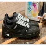 Handcrafted in Italy, the LV Trainer Sneaker for women combines high fashion with all-day comfort. A padded collar, cushioned insole, and durable rubber outsole ensure support with every step, while signature branding—like the LV Initials and Monogram Flowers—adds unmistakable Louis Vuitton flair. Whether styled with dresses, joggers, or tailored streetwear, this sneaker is a modern wardrobe essential.