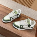 The LV Trainer isn’t just about looks—it’s built for comfort with a padded collar, cushioned insole, and shock-absorbing rubber outsole. With iconic LV branding on the side, tongue, and heel, these sneakers are a must-have for collectors, sneakerheads, and anyone wanting to turn heads with their footwear. Whether paired with designer streetwear or elevated casual fits, the LV Trainer delivers bold luxury at every step.