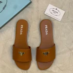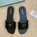 Prada Leather Slides – Flat Open-Toe Sandals with Signature Logo Strap in Dubai UAE
