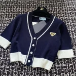 Prada Women’s Embroidered Knitted Varsity Cropped Cardigan – Chic School-Inspired Sweater Coat in Dubai UAE