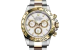 At the heart of the Rolex Daytona 116503 White is the Caliber 4130 movement, a self-winding mechanical chronograph known for its exceptional accuracy, smooth chronograph operation, and 72-hour power reserve. The watch is paired with a Rolesor Oyster bracelet, featuring an Oysterlock clasp and an Easylink extension system for comfort and security on the wrist. The combination of the white dial, yellow gold accents, and two-tone bracelet give this Daytona a sophisticated yet sporty appeal, making it a highly desirable choice among collectors. Whether worn for its motorsport legacy or as a statement of luxury, the Rolex 116503 Daytona White stands as an iconic and versatile timepiece.