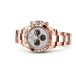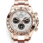 At its core, the Rolex Daytona 116505 Meteorite is powered by the Caliber 4130 movement, a self-winding mechanical chronograph known for its exceptional accuracy and 72-hour power reserve. The movement is designed with fewer components to enhance reliability while ensuring smooth chronograph functionality. The screw-down pushers and Triplock crown provide 100 meters of water resistance, making the watch as functional as it is elegant. Whether worn as a statement piece or valued as a collector’s item, the Daytona Meteorite in Everose gold stands out as a rare and extraordinary timepiece, symbolizing Rolex’s mastery of both luxury and innovation.