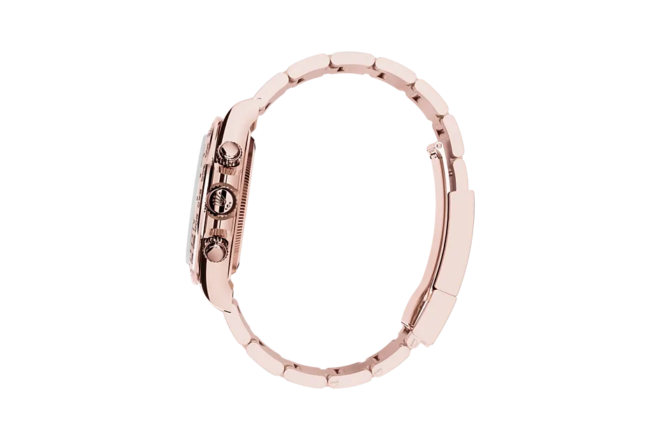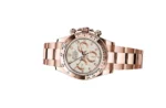 The Rolex 116505 Daytona White is a stunning embodiment of elegance and performance, crafted entirely from original silver, Rolex’s exclusive rose gold alloy. The 40mm Oyster case exudes a warm yet sporty appeal, making it a standout piece for collectors and enthusiasts alike. The crisp white dial offers a striking contrast against the Everose silver, creating a refined and sophisticated aesthetic. Accented by black sub-dials, the chronograph layout ensures both functionality and visual appeal. Completing the design is the fixed Everose gold bezel, engraved with a tachymeter scale, paying homage to the Daytona’s rich motorsport heritage while allowing for precise speed measurement.