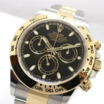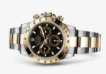 At the heart of the Rolex Daytona 116523 Black is the Caliber 4130 movement, a self-winding mechanical chronograph developed in-house by Rolex, known for its superior accuracy, efficiency, and 72-hour power reserve. The watch is secured with a two-tone Oyster bracelet, featuring an Oysterlock clasp for a secure fit and an Easylink extension system for added comfort. With a water resistance of 100 meters, this timepiece is built for both adventure and everyday wear. The Rolex 116523 Daytona Black is a true icon, seamlessly merging luxury with high-performance engineering, making it a prized addition to any collection.