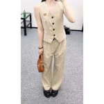 Elevate your warm-weather wardrobe with this chic two-piece vest and wide-leg pants set, ideal for both casual elegance and refined office wear. Commonly referred to as a linen suit vest and tailored pants set, this ensemble pairs a long, sleeveless vest with structured lapels and front buttons, with coordinating wide-leg trousers that offer a relaxed yet polished silhouette. Inspired by minimalist fashion, this set is often seen under names like “Weekday Linen Long Vest with Long Pants Set”, highlighting its breathable and seasonally-appropriate material. Perfect for summer brunches, meetings, or smart-casual events, the versatile design can be dressed up with heels or kept laid-back with sandals.